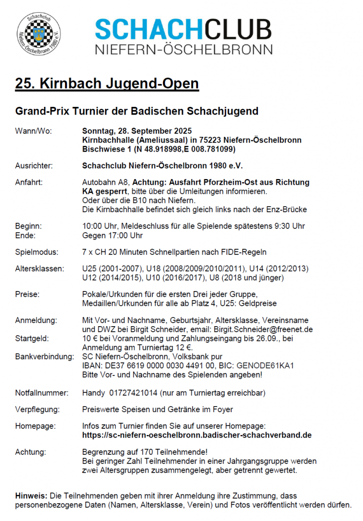 28. September | Niefern-Öschelbronn | Kirnbach Jugend-Open | siehe unten |
