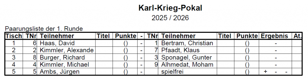 Gewinner*in zieht in die nächste Runde ein. Bei Remis zieht Schwarz in die nächste Runde ein.